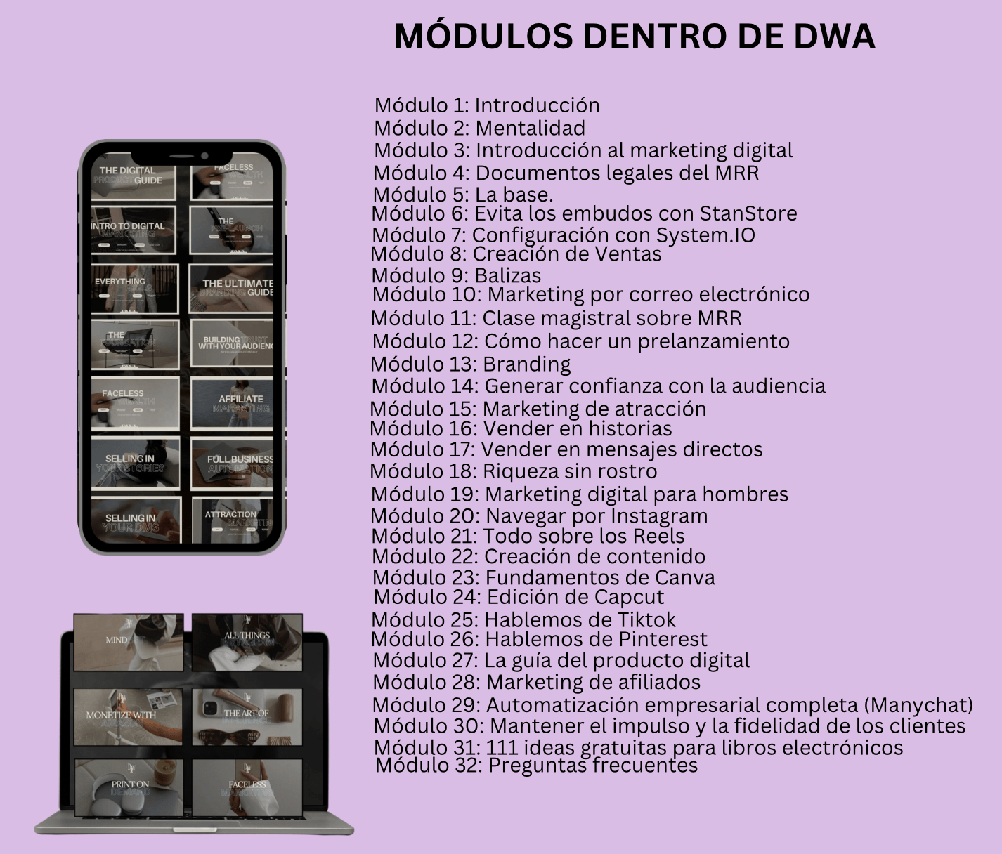 DWA is A ALL DONE-FOR-YOU Digital Marketing course. Where you will start your Digital product business from home. With the ability to spend time with your family. This course will give you the oportunity to make money even when you are sleeping. But wait thats vnot all the most important thing is that you don't need No Expirience NEEDED it is a friendly beginner course where you will learn everything.